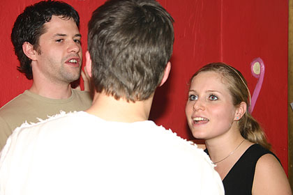 Lorena strahlt um die Wette und der Mann mit dem kaputten Hemd guckt weg. Tsss!