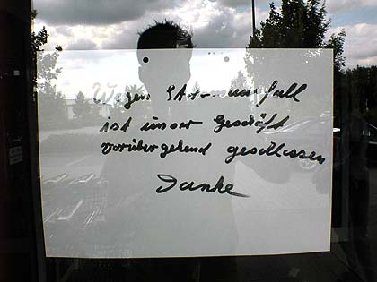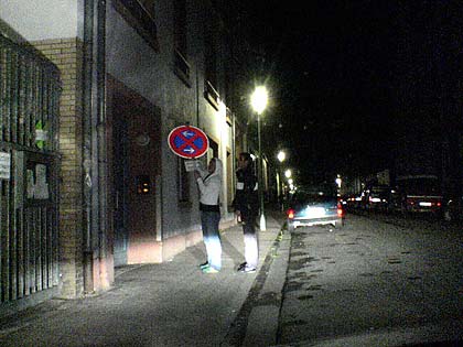 - hier wurde soeben ein Baustellenschild entwendet, um es vor die